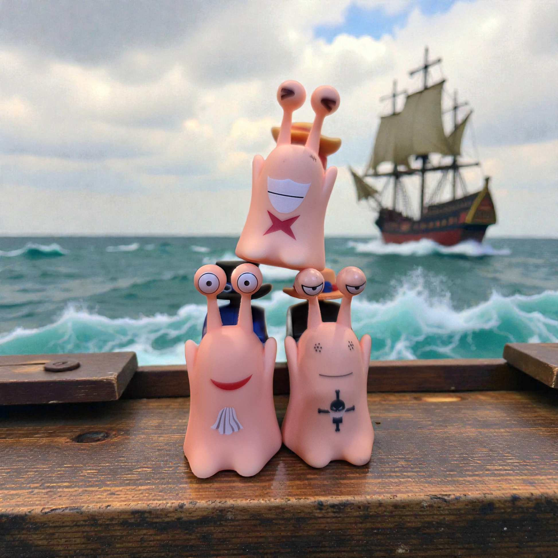 Lleva contigo un pedacito del mar y la aventura con este llavero Den Den Mushi, inspirado en los icónicos caracoles de comunicación. Su diseño chibi lo hace adorable a simple vista, pero con detalles que lo vuelven único.